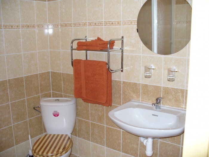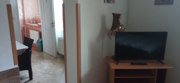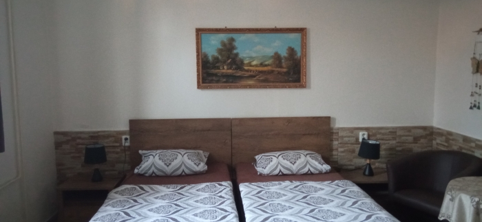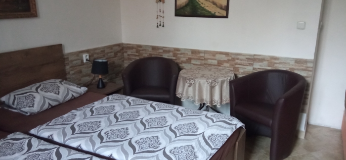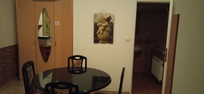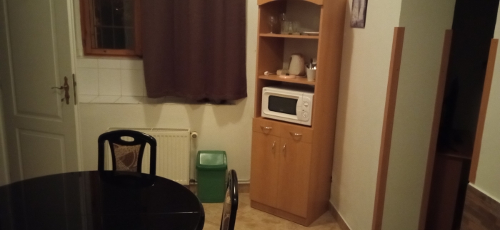 Jedno - až třílůžkový apartmán V SUTERÉNU .... apartmán se sice nachází v suterénu,ale i přesto vysoko nad úrovní ulice. Skládá se z ložnice a obývací části,kde je velký stůl a malá kuchyňka ( bez možnosti vaření ).Apartmán disponuje sprchou.