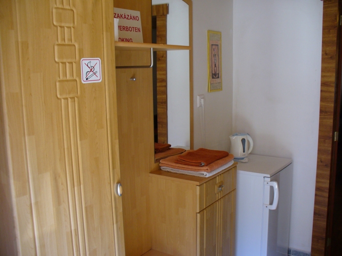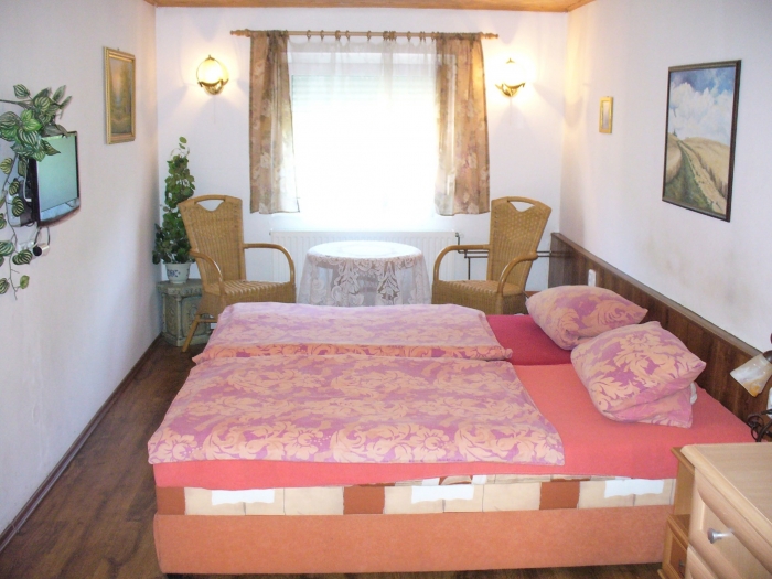 Jedno-dvoulůžkový pokoj s vlastním vchodem, malou předsíňkou,kde se kromě skříně nachází lednice,mikrovlnná trouba a rychlovarná konvice.Tento pokoj zajistí hostům 100%ní soukromí. |